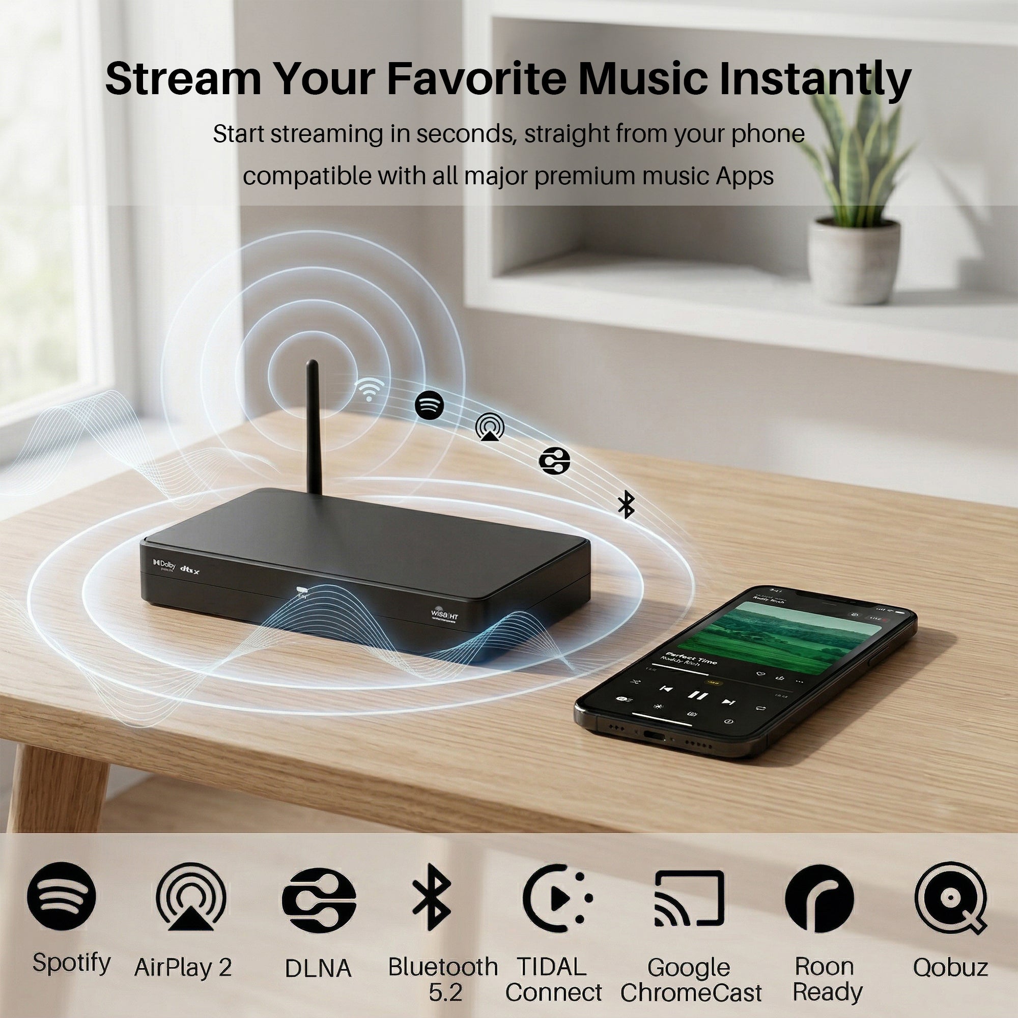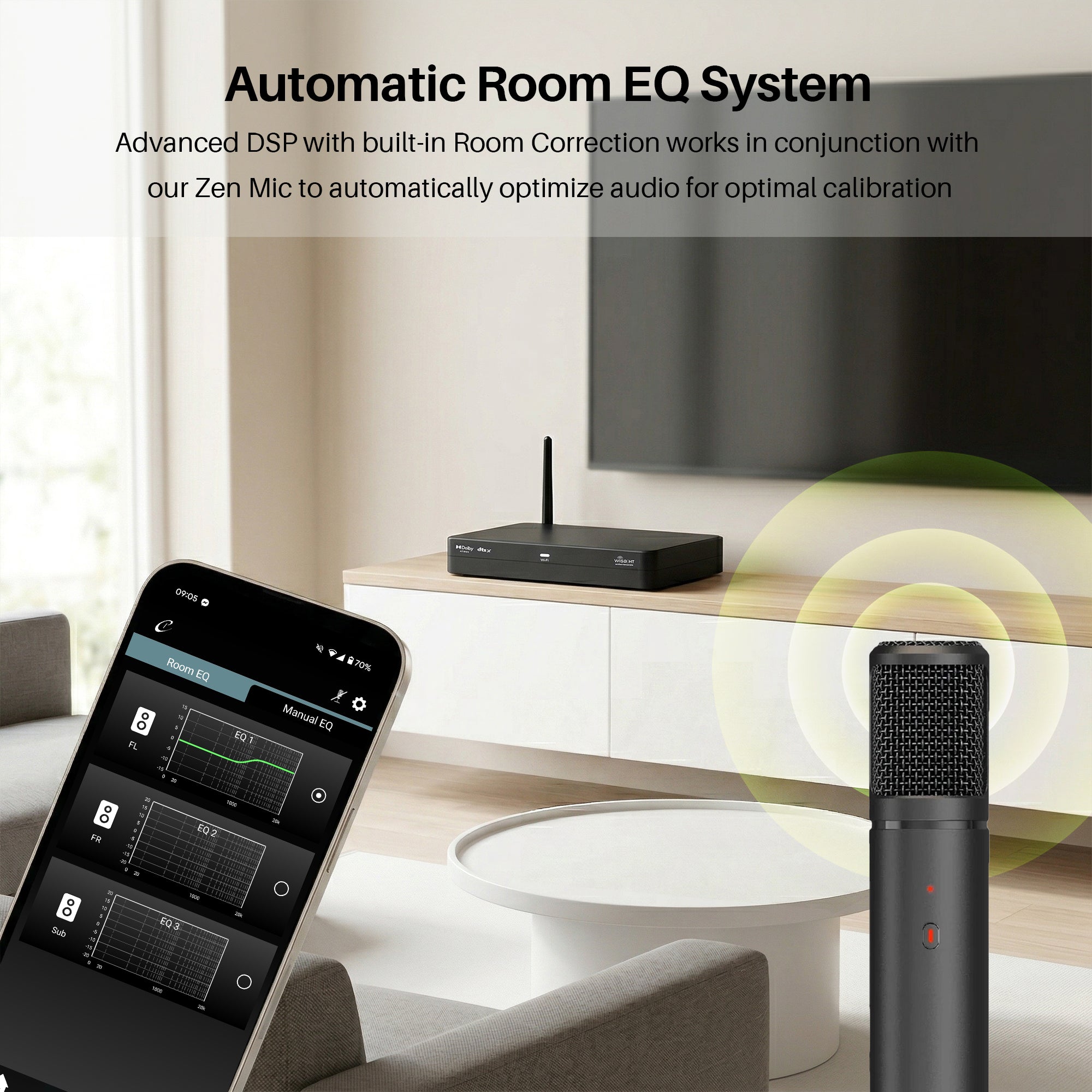 Note: This hub includes automatic room EQ function. For best performance, it is suggested to use the Zen Microphone for calibration. Zen Mic is mandatory for Android users; iPhone users can also use the built-in microphone with a good result.