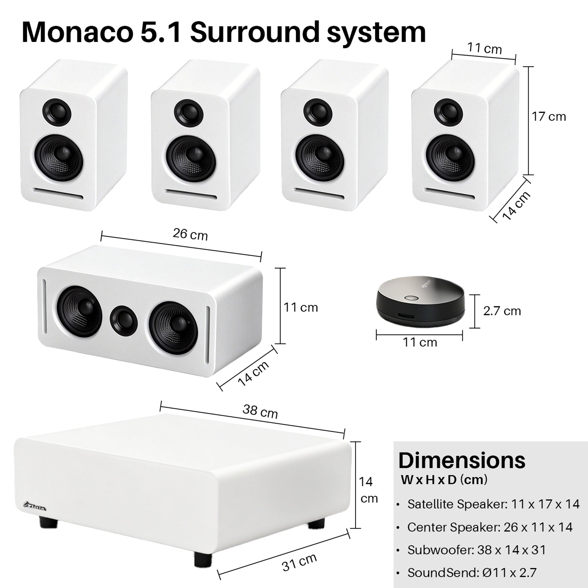 Monaco 5.1 Surround W/ WiSA SoundSend (With UK/EU Plugs)